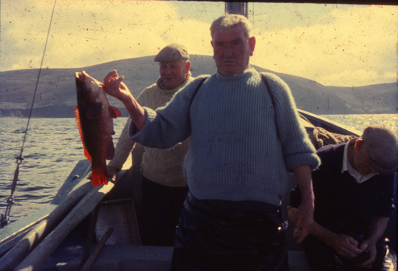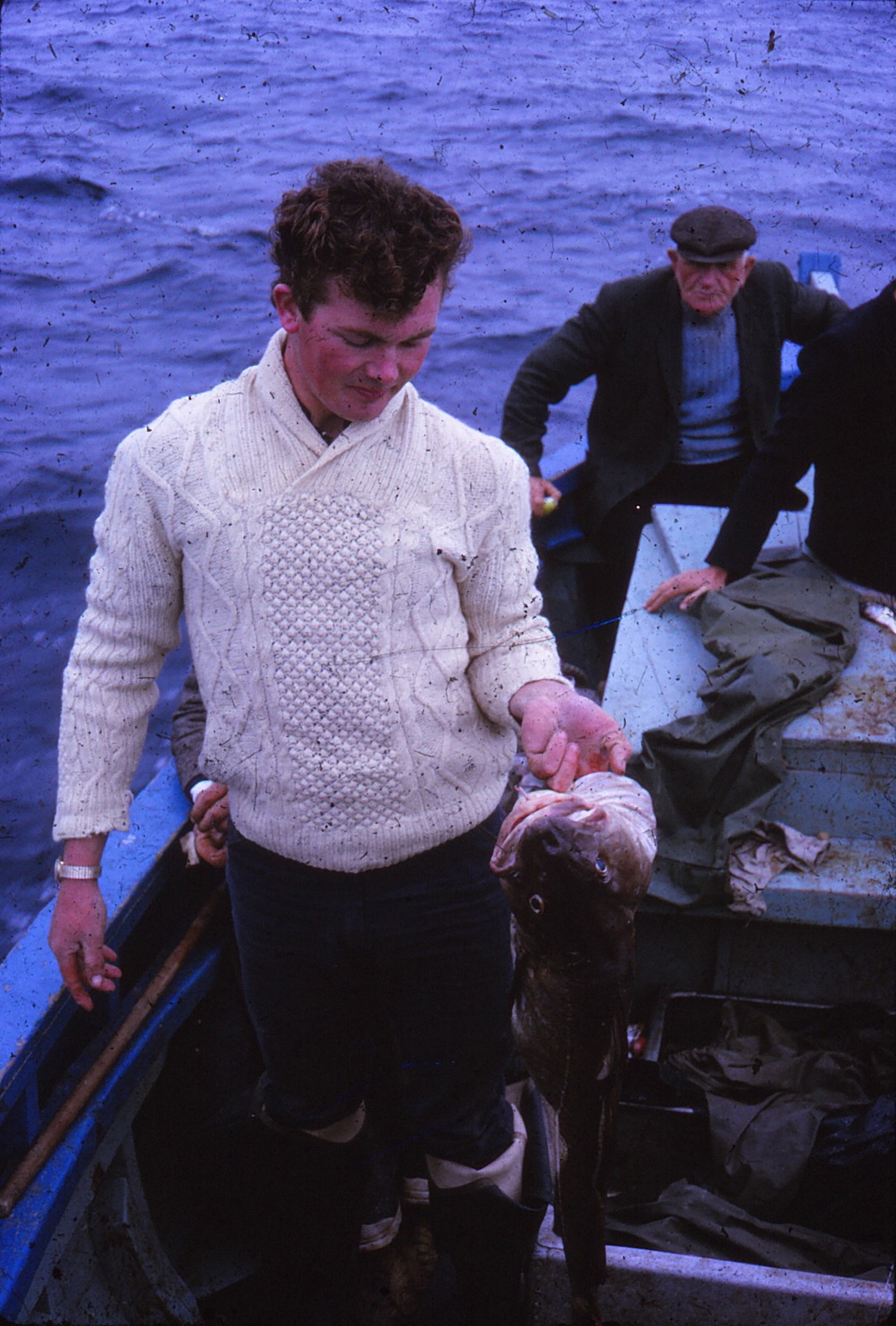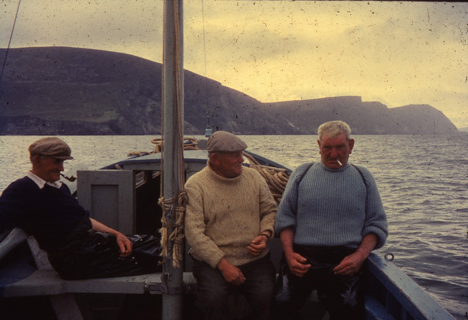 Percy Huet (White Aran), James Gavin (Pipe), Big Mangan (Blue jumper)