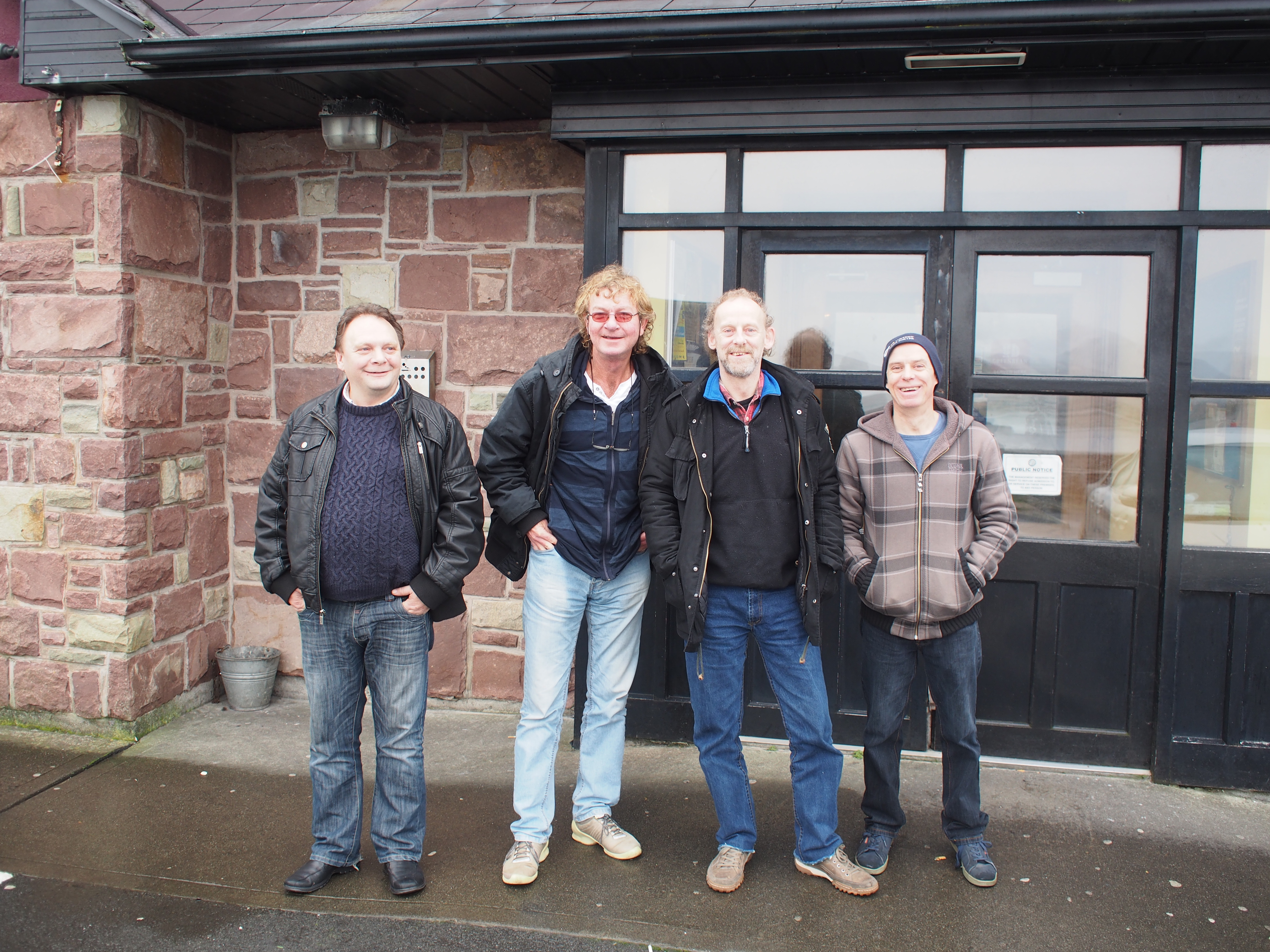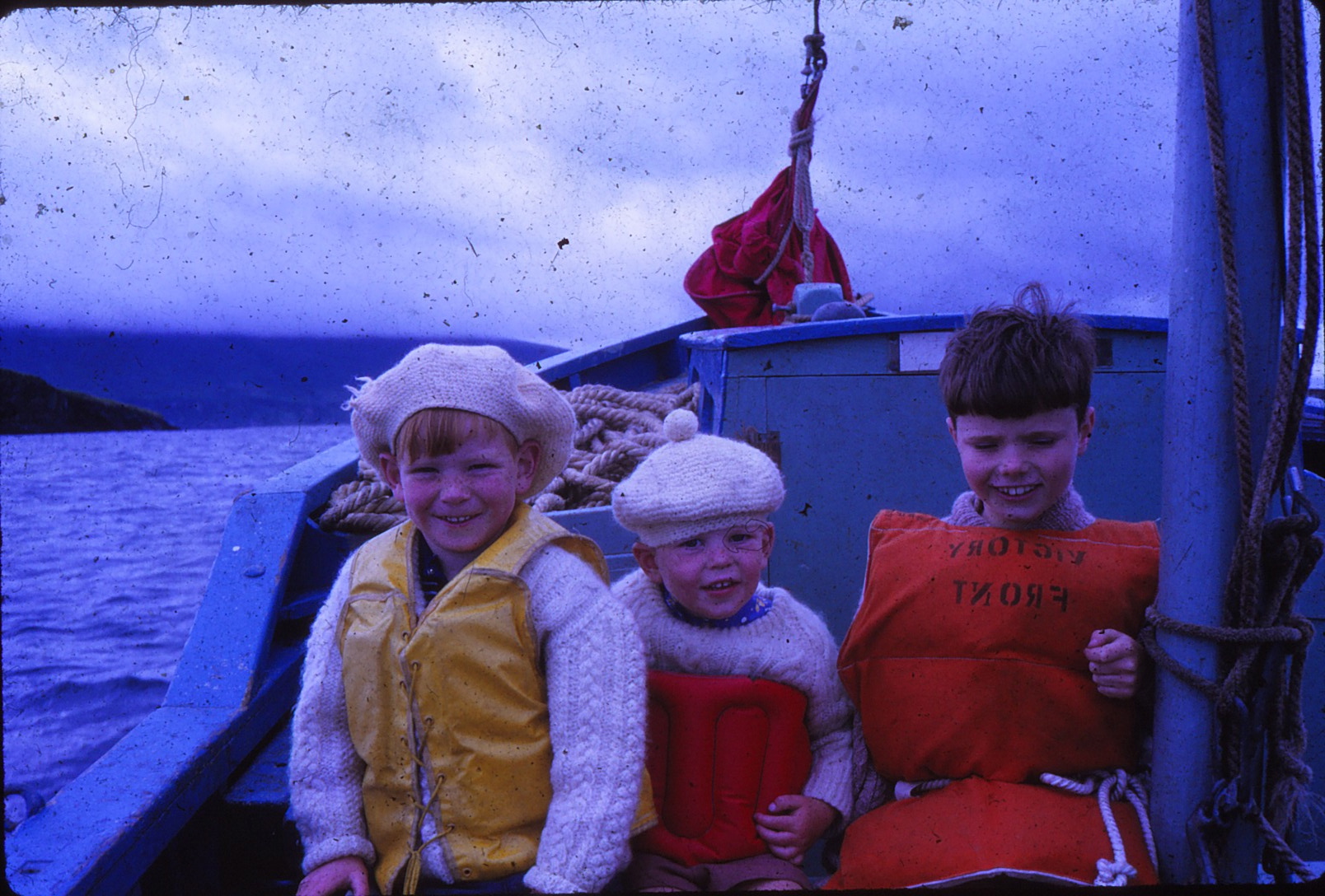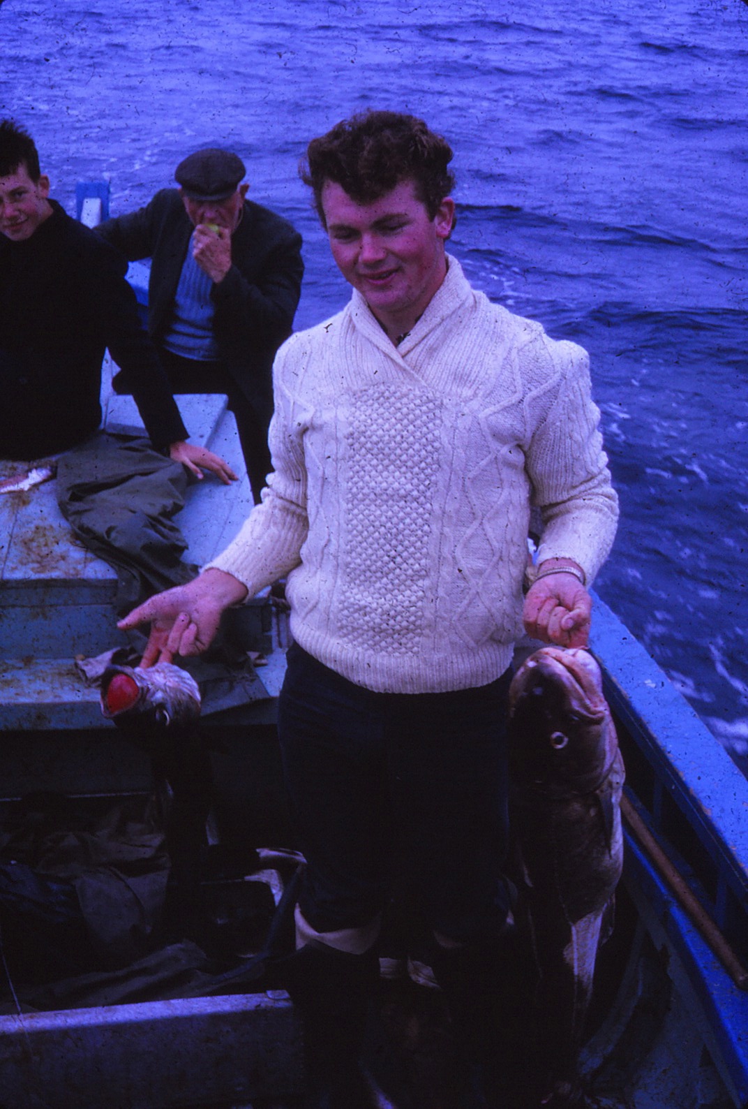 Percy Huet (White Aran), James Gavin (Pipe), Big Mangan (Blue jumper)
